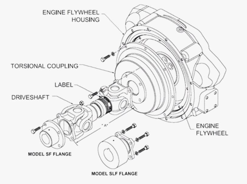 對于具有直角齒輪傳動(dòng)的驅(qū)動(dòng)系統(tǒng),如果未安裝扭力聯(lián)軸器,則可能會(huì)因固有頻率而損壞。參考 NFPA 20,使用角齒輪傳動(dòng)的立式渦輪泵,由柴油發(fā)動(dòng)機(jī)驅(qū)動(dòng),應(yīng)使用扭轉(zhuǎn)減振型聯(lián)軸器,并安裝在驅(qū)動(dòng)軸的發(fā)動(dòng)機(jī)側(cè) (7.5.1.6.4)。當(dāng) AHJ (7.5.1.6.4.1) 提供并接受質(zhì)量彈性系統(tǒng)扭轉(zhuǎn)分析時(shí),應(yīng)允許省略扭轉(zhuǎn)減振型聯(lián)軸器。