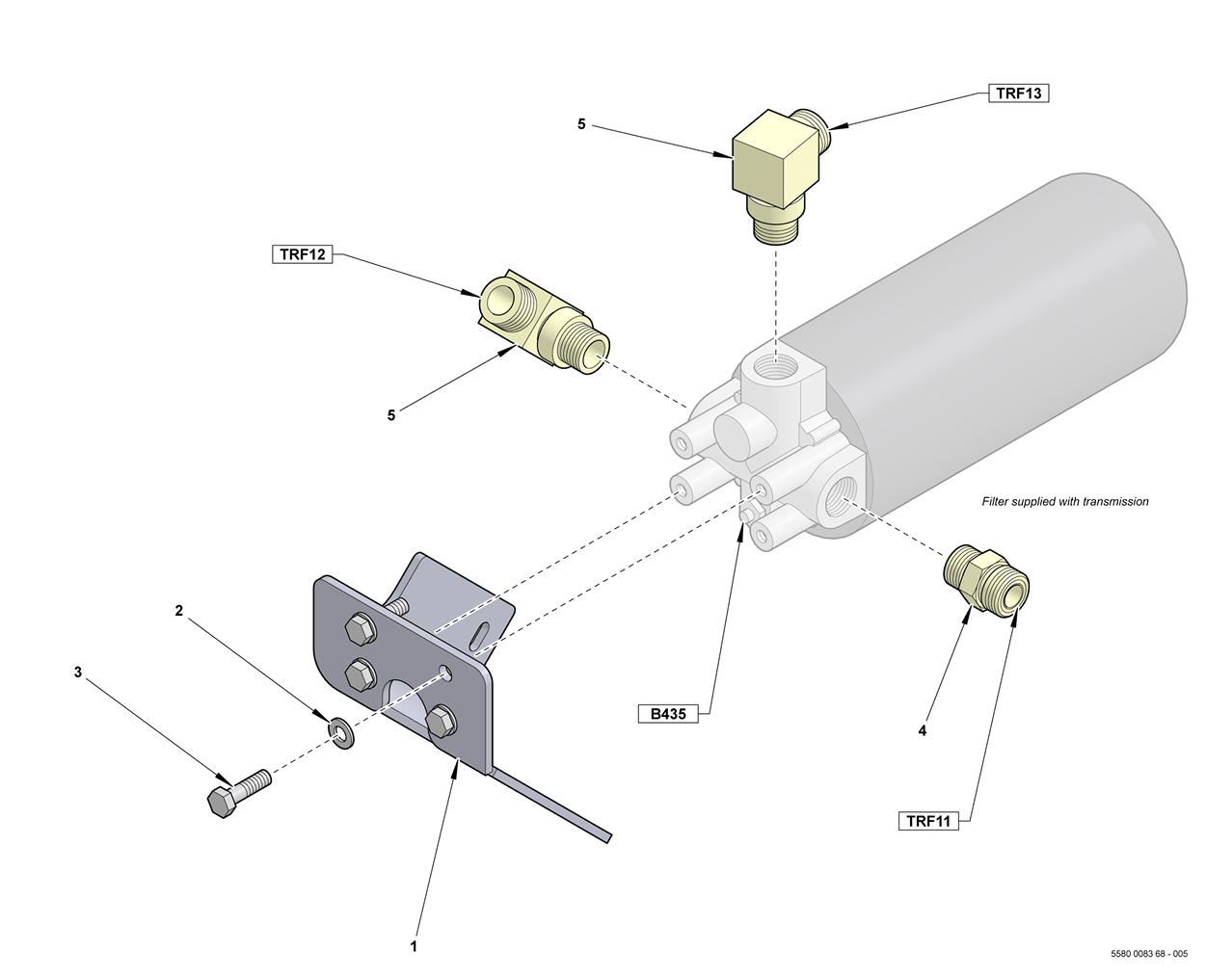 零件號 名稱 數量 備注 再制造件號 L FILTER SET - TRANSMISSION FILTER SET TRANSMISSION 項目 COMPLETE _ASSEMBLY FILTER SET 1 TRANSMISSION FILTER SET 1 2 5580011002 0301234400 ATTACHMENT PLAIN WASHER 1 GRAY 4 3 4 0147136403 0570702520 SCREW, HEX HEAD NIPPLE 4 10,5 / 20 X 2 -HB 200 FZB M 10 X 35 - 8.8 FZB 1 5 0570704118 ELBOW NIPPLE 2 B1 18-20 UN 1 3/16-12 B1 18 20 UN 30,16 1 3/16