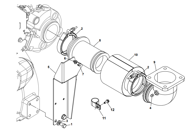 REF PART QTY PART REF PART QTY PARTNO. NO. USED DESCRIPTION NO. NO. USED DESCRIPTION1 800−3017−52 2 Screw, Hex Head Cap(M12 x 1.75 x 20mm)2 155−4263 2 Clamp, Exhaust3 526−0399−64 2 Washer, Flat (M12)4